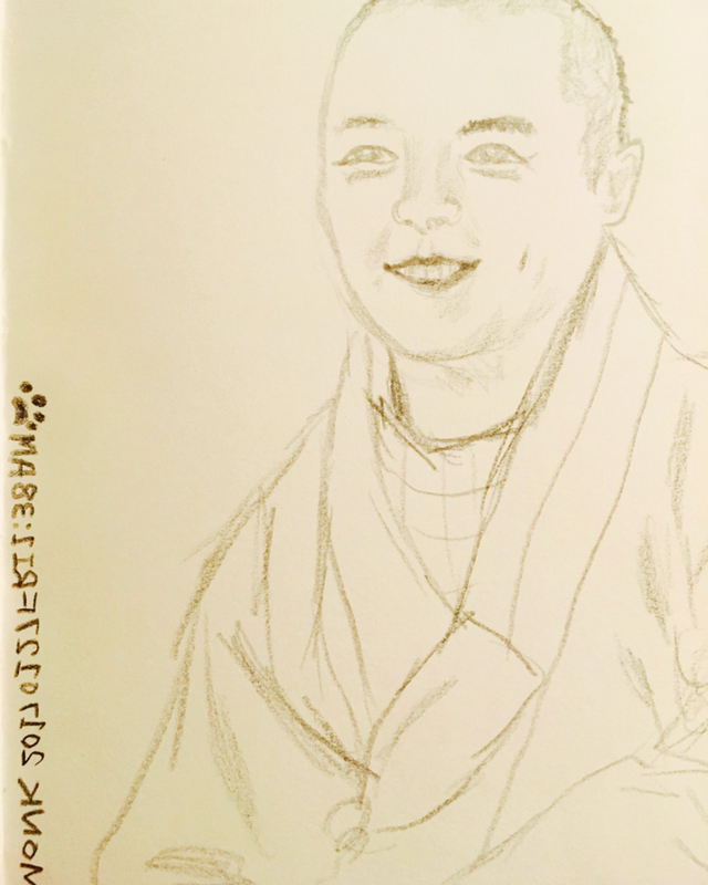 아무래도 내가 인물 표현에 약한데 게다가 스님이란 헤어 스타일이 일관적이라서 더 특징을 잡아내기가 어려웠다는 나름의 분석.