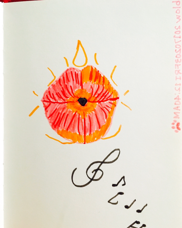 외출했다가 들어오는데 갑자기 머릿속에 라라랜드에서 휘파람 불던 것이 떠오르더니 그 음악이 반복재생되기 시작했다. 그러며 동시에 휘파람 부는 입술을 그려야지, 하는 생각도 함께 찾아와 집에 돌아오자마자 저 그림을 그렸다.