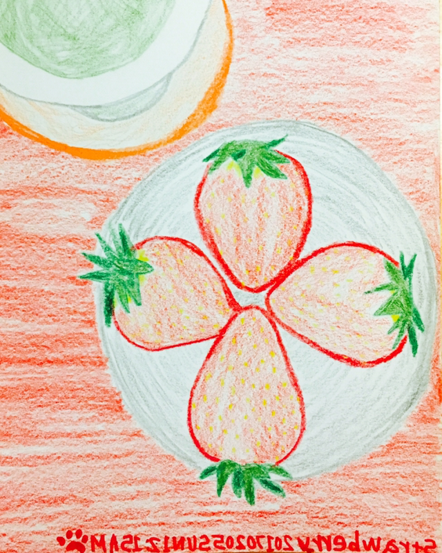 씨앗도 있고 그래서 좀 어려웠다. 만약 까맣게 표현했다면 좀 쉬웠을지도 모르겠는데 내가 먹었던 딸기는 노란색이라서 사실성을 더 존중(!)하여 덜 빨갛게 칠하는 대신 노란 씨를 살리는 방향으로 선택.