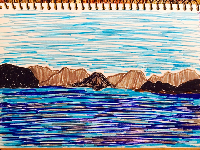 꽤 깊었다. 그리고 둘레로 산들이 많았는데 내가 멀리서 보기엔 마치 다도해를 보고 있는 기분이 들기도 해서.....이 그림의 부제는 '우리는 섬이다'로 정했음.