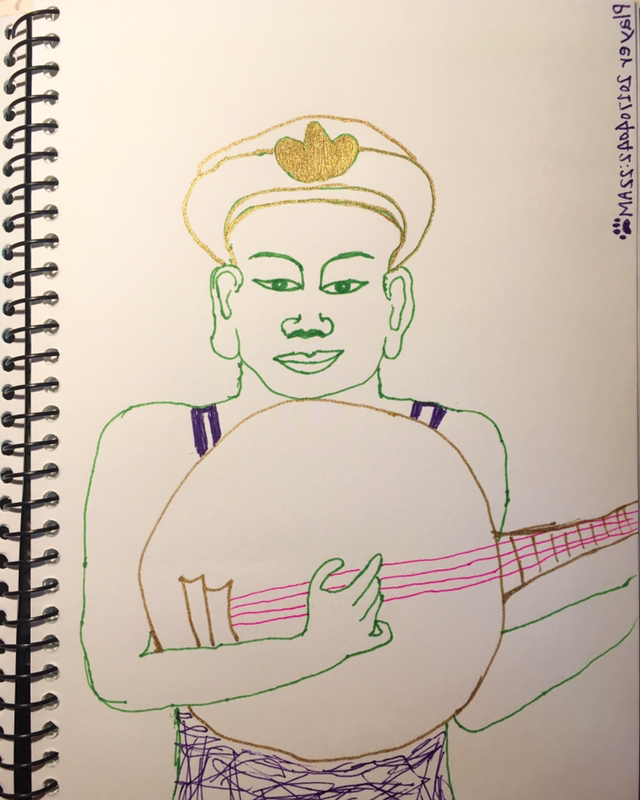 그중에서 비파인지....그걸 연주하는 남자의 부조가 마음에 들어서 따라 그리기 시작했는데....