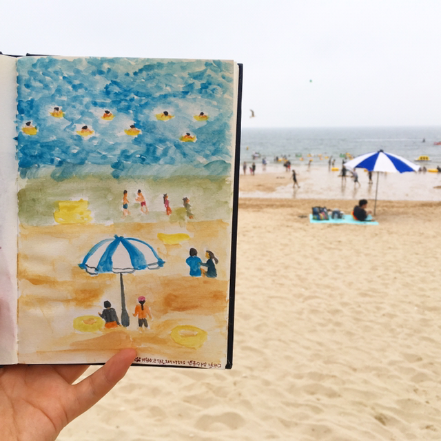 혼자 와서 바다에 들어갈 처지도 못 되고.....약간은 처량한 기분이 들 줄 알았지만 그림을 그리고 있노라니 그런 기분을 느낄 겨를도 없고....