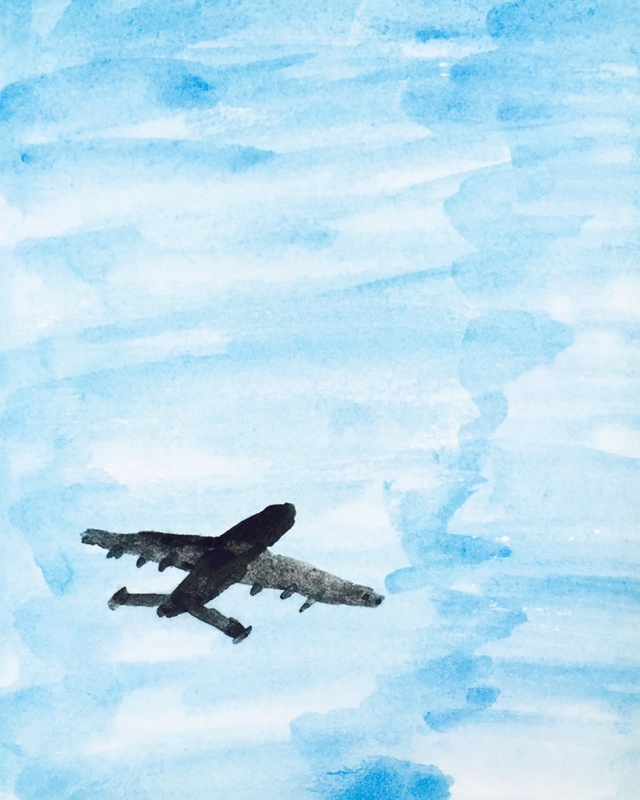 하늘 위를 나는 저 비행기에 내가 타고 있다면 좋겠다는 마음을 담아 그려본 그림.