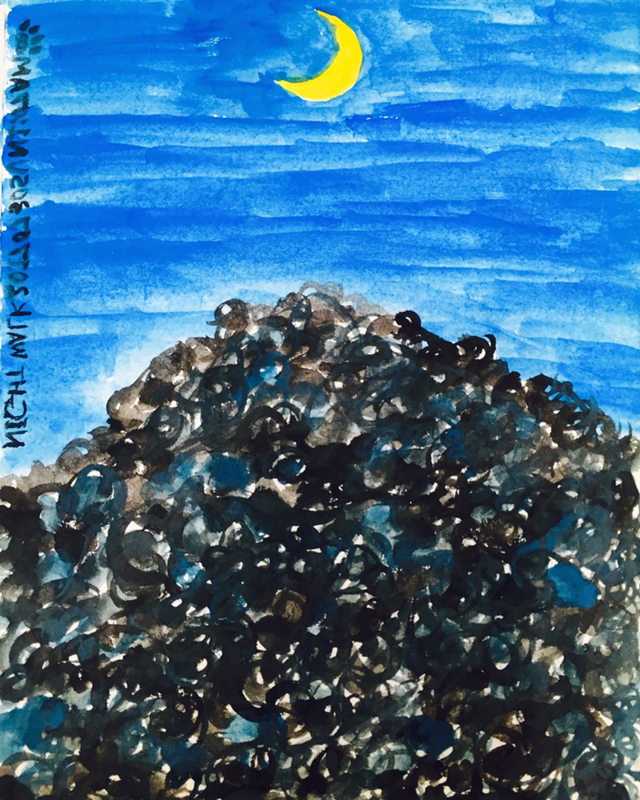 통통하게 살이 오르는 중인 달이 밤마실 길을 비춰주었던 걸 마음에 새긴 뒤 집에 들어오자마자 열심히 그려봤는데......