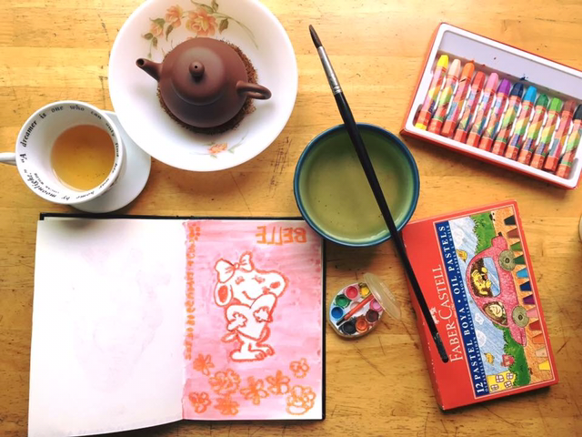 차를 마시다가 문득 생각만 했던 그림을 그려보자 싶어서 막 재료들을 꺼냈다.