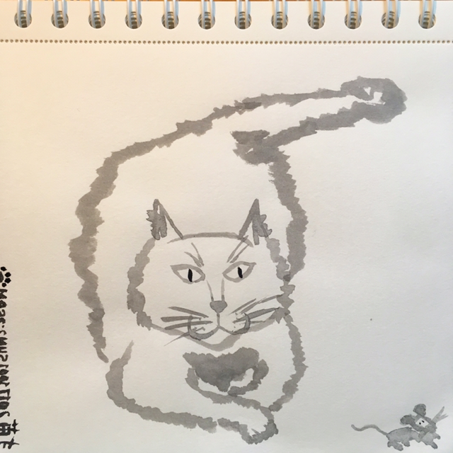 고양이 그리고 보니 허전해서 새앙쥐 한 마리도 그려넣었다.