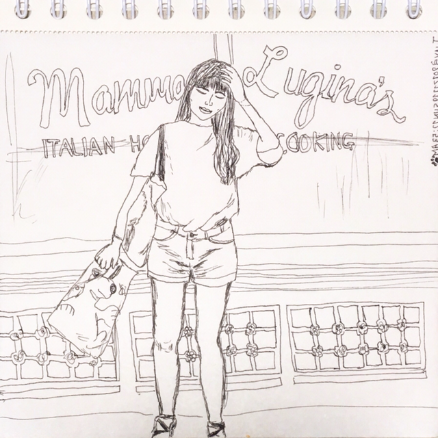 넘나 아리따운....사진이 도착했다. 문제는.....건물의 복잡한 선을 보고 헉! 뭔가 고민을 많이 하다가 인물을 중심으로 그리자는 꾀(?)를 냈다. 하지만 그렇게 하고도 내가 그려야 할 라인들이 꽤 보여서 가는 만년필로 그려보기로 했고 저런 결과물이 나왔다. 세세한 것이 많으면 과감하게 그걸 표현하든지 아니면 생략해서 표현하든지....뭔가 결단이 필요한 것 같다.