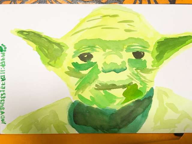 새 영화 개봉 기념으로 과거의 영화를 상영해주기에 와인 홀짝이며 요다를 그려봤다.