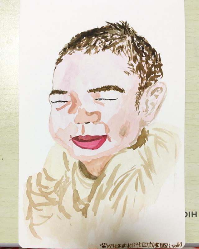 위 그림을 다 그리고 나니 웃으며 잠든 사진이 도착한 거지.