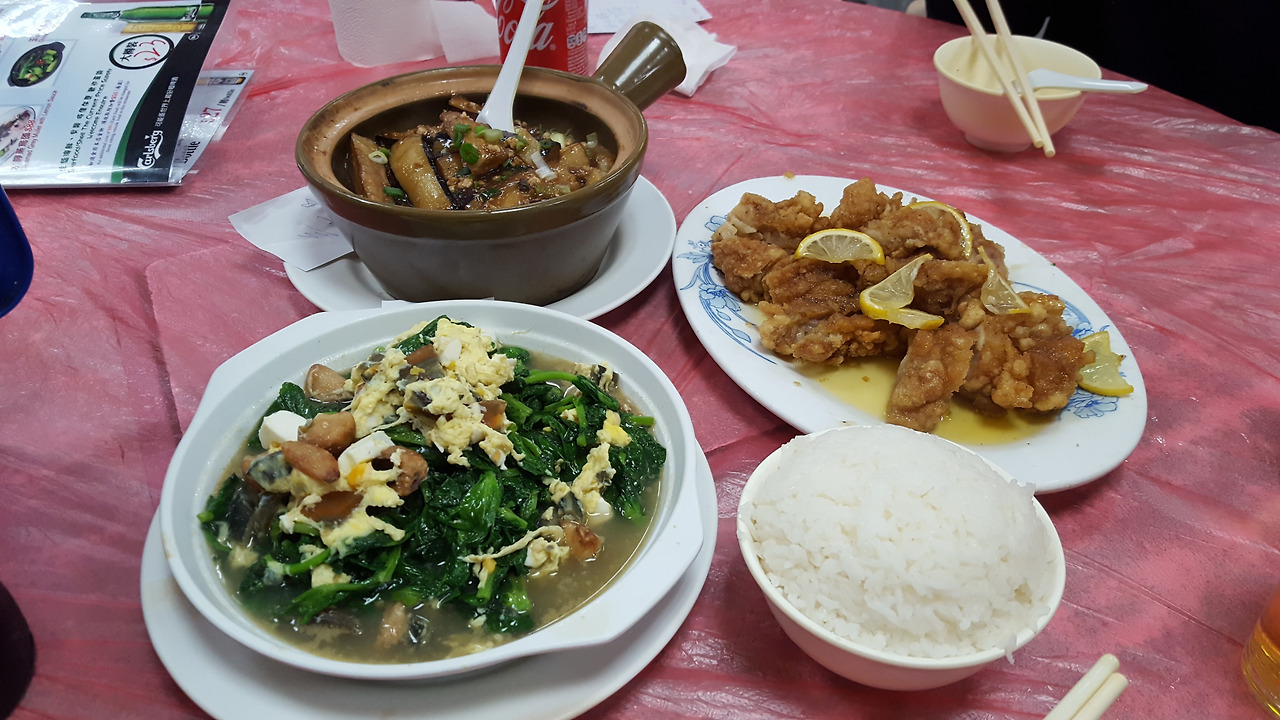 우리는 레몬 치킨, 가지 요리, 달걀 요리, 돼지고기를 저민 요리 등 여러 음식을 시켜 나누어 먹었다. 내가 고른 레몬 치킨이 제일 맛있었고 시금치, 계란, 통마늘이 들어간 요리도 익숙한 맛이어서 잘 먹었다. 홍콩에서 먹은 음식들은 전반적으로 간이 좀 짜긴 했지만 거부감은 들지 않는 친숙한 맛이었다. 그렇게 떠들썩한 식당에서 늦은 저녁을 먹으며 마음이 콩콩거렸던 둘째 날 밤도 지나갔다.