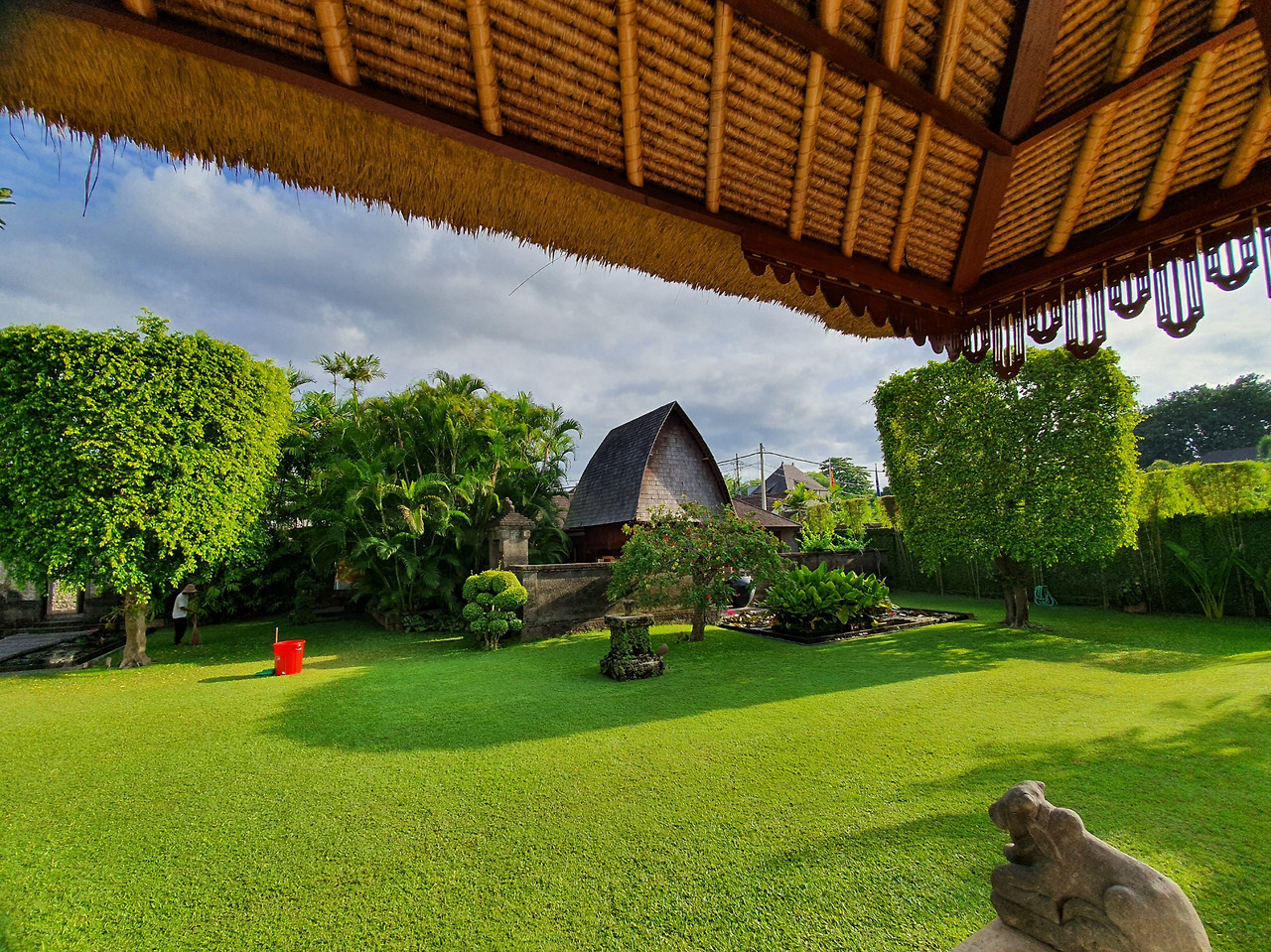 숙소에 돌아오니 관리인 아저씨의 강아지가 드넓은 숙소 정원에서 털을 휘날리며 뛰어다니고 있다. 발리의 길에 흔하게 보이는 동물들이 개와 닭이다. 심지어 차도에 드러누워 잠을 자는 개를 본 적도 있다. 날이 더우니 개들은 아무 데나 누워 내내 잔다. 그러다가 이렇게 활기차게 뛰어다니는 개를 보니 신기하다. 정원을 돌던 강아지가 갑자기 객실로 뛰어들어가자 지켜보던 사람들이 웃음을 터트렸다. 개도 사람도 어릴 때는 어떤 행동이든 허락이 되는 특권이 있다.