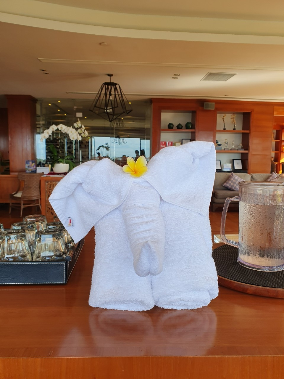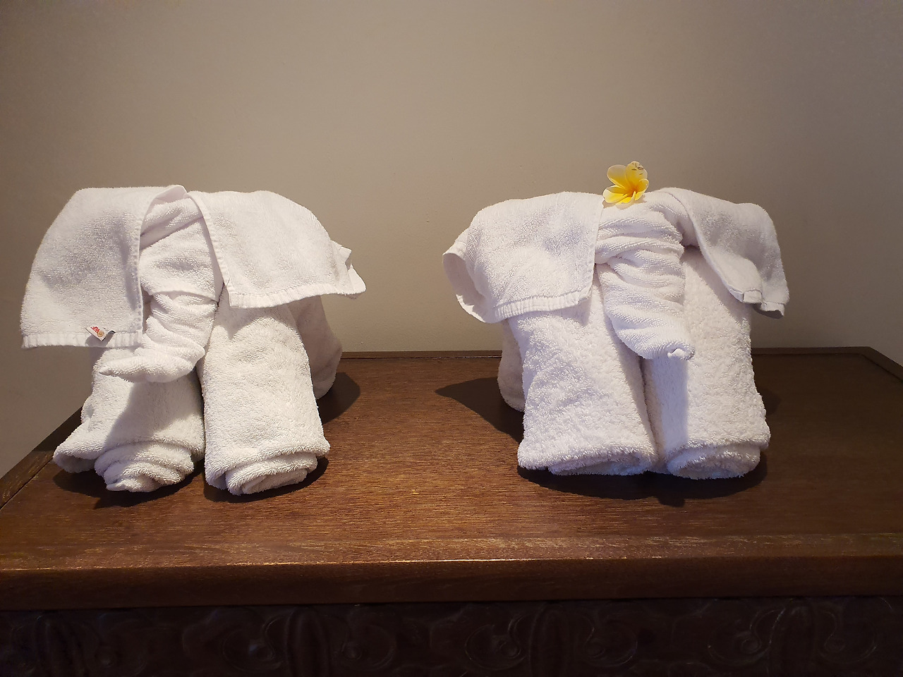 아침 산책을 마치고 돌아오니, 리조트에서 만들어준 수건 코끼리를 소중하게 껴안고 잠들었던 아들이 망가진 코끼리를 붙들고 통곡을 하고 있다. 밥도 안 먹고 침대에 엎드려 서럽게 흐느끼고 있길래 하우스 키퍼에게 다시 한 개만 만들어달라고 부탁을 드렸다. 그놈의 코끼리가 뭐라고 이 난리를 치는지.