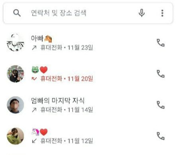 작은 녀석의 휴대폰 연락처 목록에 '우리형'이라는 이름이 저장되어 있다.