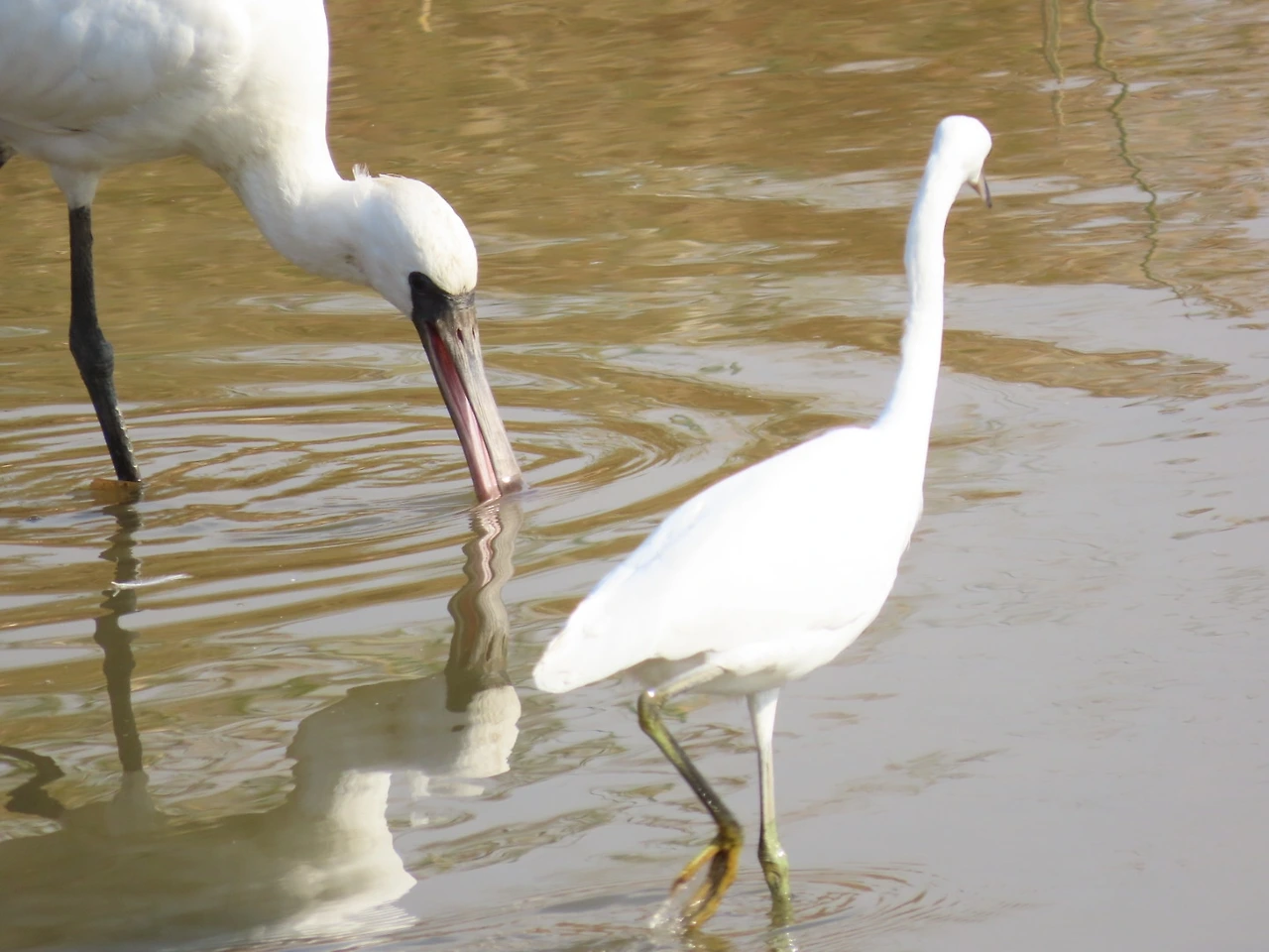 그리고 저어새와 쇠백로를 오늘 김포한강생태공원에서 만났어요. 저어새 옆에 쇠백로가 찰싹 붙어있는 거예요! 대에박! 아주아주 신기한 광경이었습니다. 저어새는 쇠백로랑 붙어서 안 떨어지는 거예요. 마치 데이트하는 것처럼 보였습니다. _^0^ 어쨌든 찍고 또 찍었습니다. 아주 가까이에서요. 막상 다 찍고 가려고 하니 좀 아쉽더라고요. 천연기념물 205호에 멸종위기종 저어새와 헤어지다니. ㅠㅠ