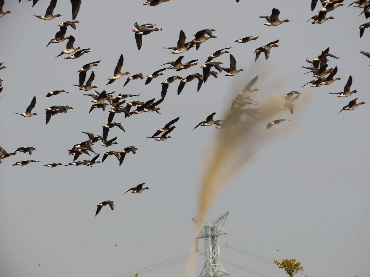 기러기, 오리는 조류독감을 갖고 있을지 모르니 조심하세요. 기러기는 떼를 지어 날아다녀요. 오리는 오리 편에서 보시면 됩니다.