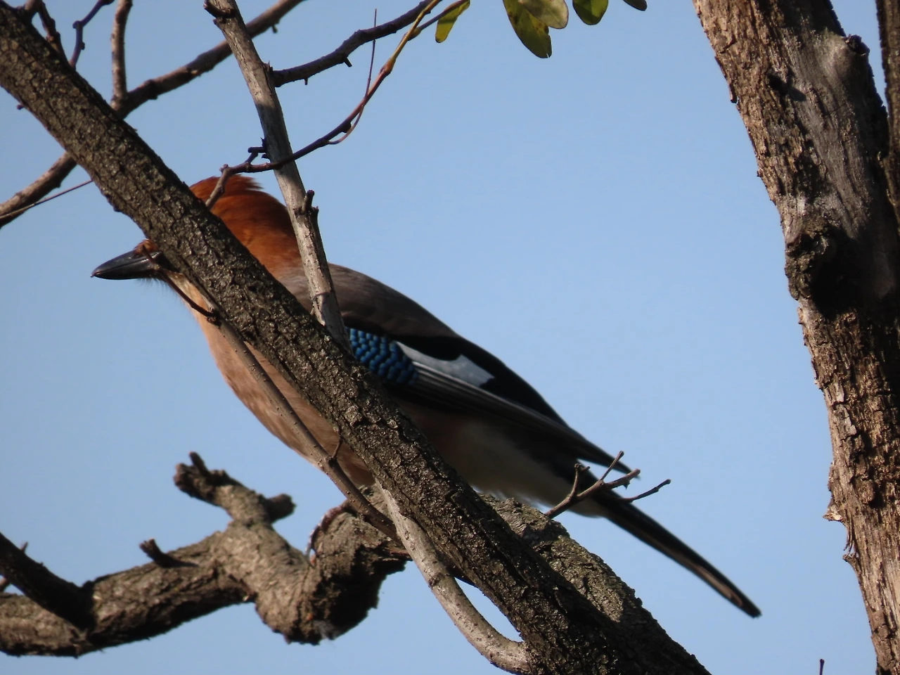 첫번째 어치. 어치는 까치 크기이며 목이 주황색이고 깃끝이 파랗습니다. 산에서 버드콜(새를 부르는 소리, 유튜브 새소리 이용)을 하면 많이 옵니다. 황여새, 홍여새랑 착각하지 마세요.