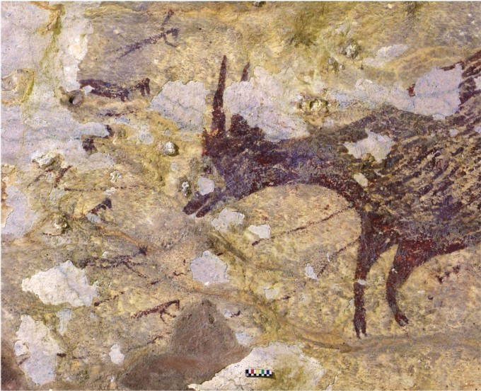 네이처에 실린 가장 오래된 동굴벽화, 4만3900년전 벽화로 추정되며 물소사냥을 표현하고 있다