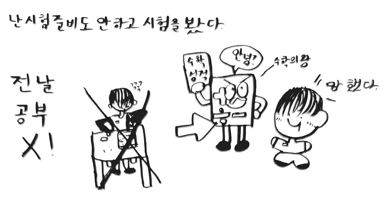 "아빠, 나 오늘 수학시험 예상 밖의 점수가 나왔어."