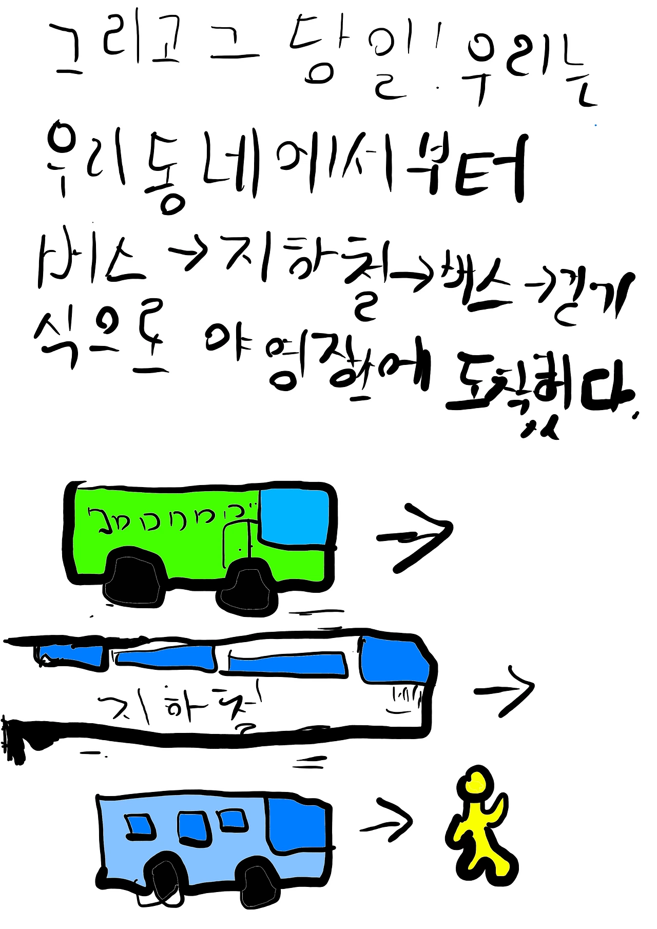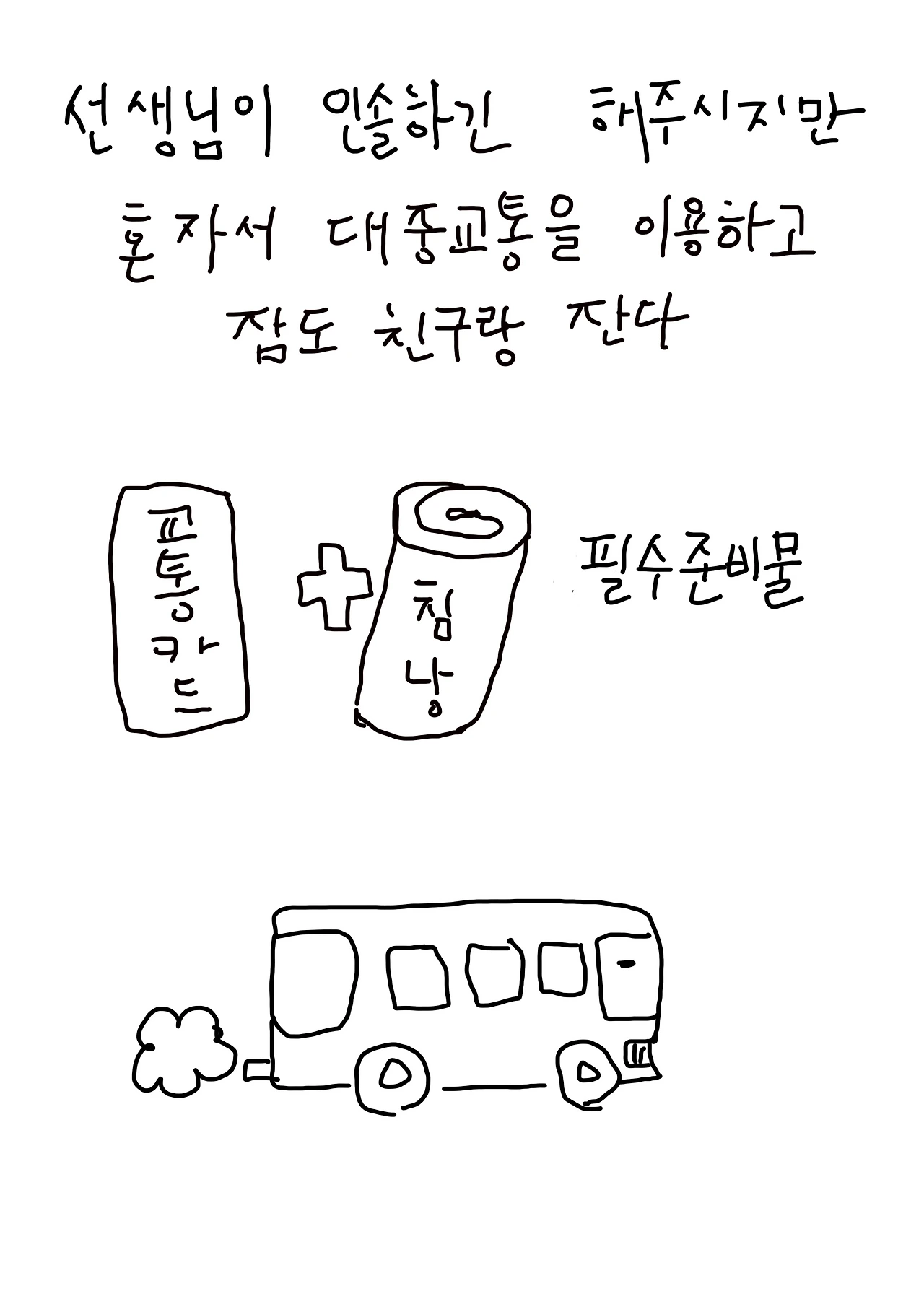 교통카드를 만들어 쥐어주고 아이를 보내놓고 계속 신경을 썼다. 아내는 "엄마나 아빠 없이 혼자 어디 가서 자는 건 처음이야."라고 말한다. 생각해 보니 그렇다. 그런 부모 마음과 달리, 아들은 친구들과 신나게 노느라 밤을 꼬박 새우고 버스와 지하철을 갈아타고 집에 왔다.