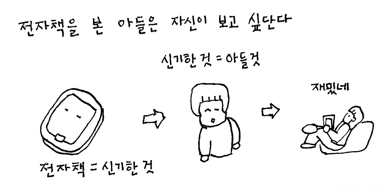 그런데 뜻밖에도 전자책은 재밌게 읽는다. 물론 엄마의 빨리 자란 잔소리 없이 자야 될 시간을 연장하는 용도로 사용되는 면이 있지만, 뭐 만족스럽다.