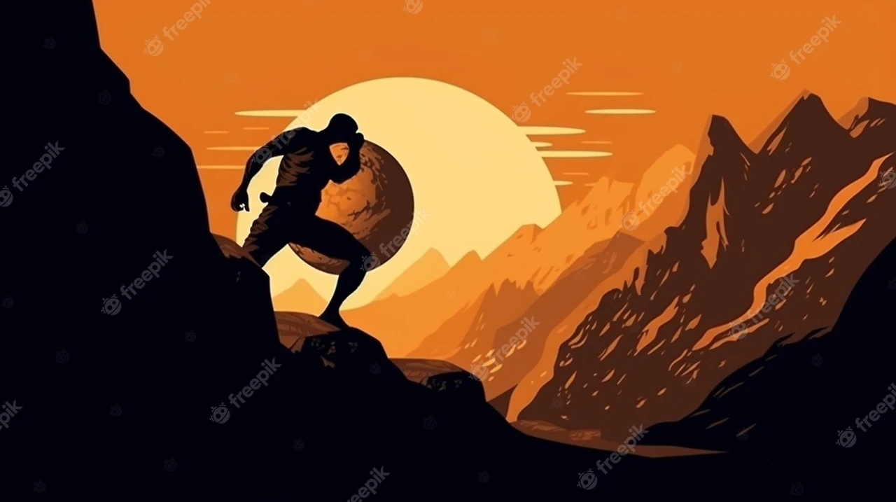 * 신의 노여움을 얻어 굴러 떨어질 돌을 꼭대기까지 굴려 올려야 하는 시지프스의 처지와 비슷하다.