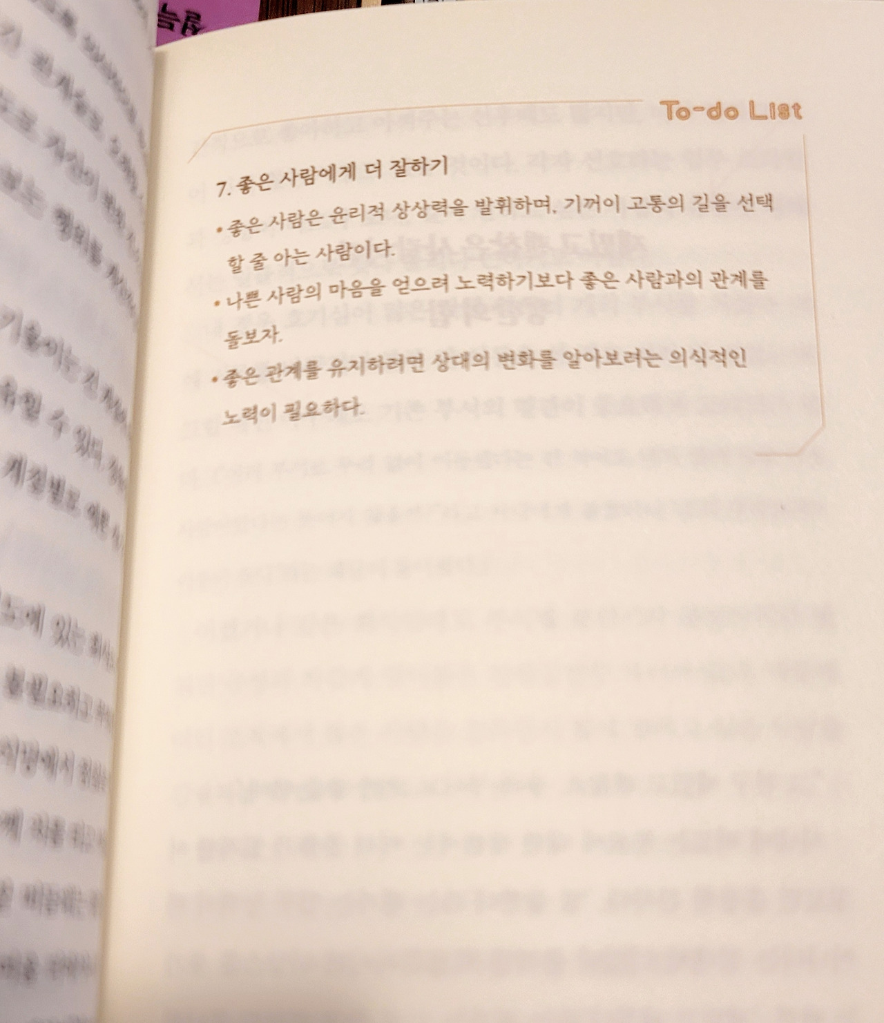 따라서 자신이 쓰고 있는 내용을 요약해서 제시할 필요가 있는지를 고민해 보면 좋습니다. 누군가를 움직이는 데 필요한 부분이 있는지를 살피고, 그에 따라 요약페이지를 구성해 보는 것이죠. <일터에 관한 낯선 시선>에서는 각 장의 끝에 To-do List를 넣었습니다. 인문 에세이지만 실제로 깨달음을 요약해서 나누고 삶에 적용할 방법을 제시했습니다.