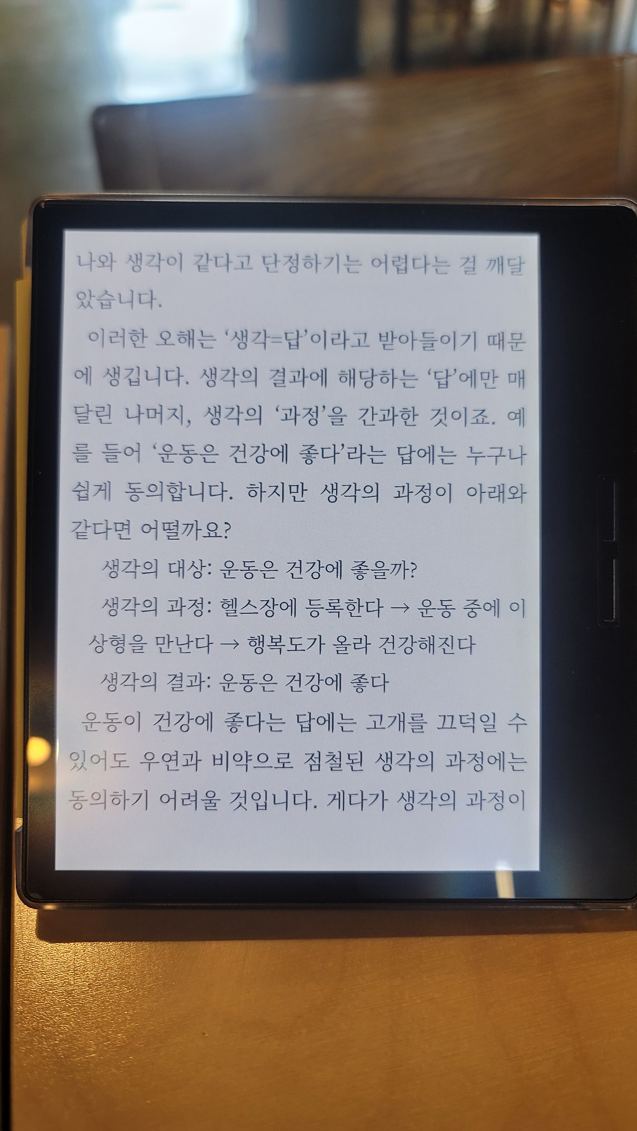 유머는 어려운 글을 따라 읽으며 긴장의 피로가 쌓여있을 때 이를 이완해 주는 효과를 줍니다. 예를 들어 생각이란 무엇인가에 대한 글을 따라 읽다가 유머가 있는 예시를 보게 되면 '운동이 건강에 좋은 이유를 이렇게 받아들이다니 재밌네'라며 미소 짓게 됩니다. 긴장이 일시에 이완되면서 다시 글에 집중할 수 있게 됩니다.
