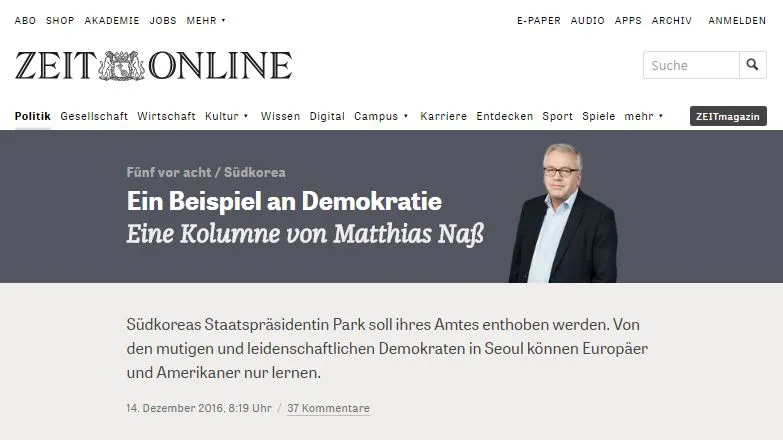 독의 권위 있는 언론인 '디 자이트(Die Zeit)'은 2016년 12월 3일자 기사에서 이렇게 썼다. ²