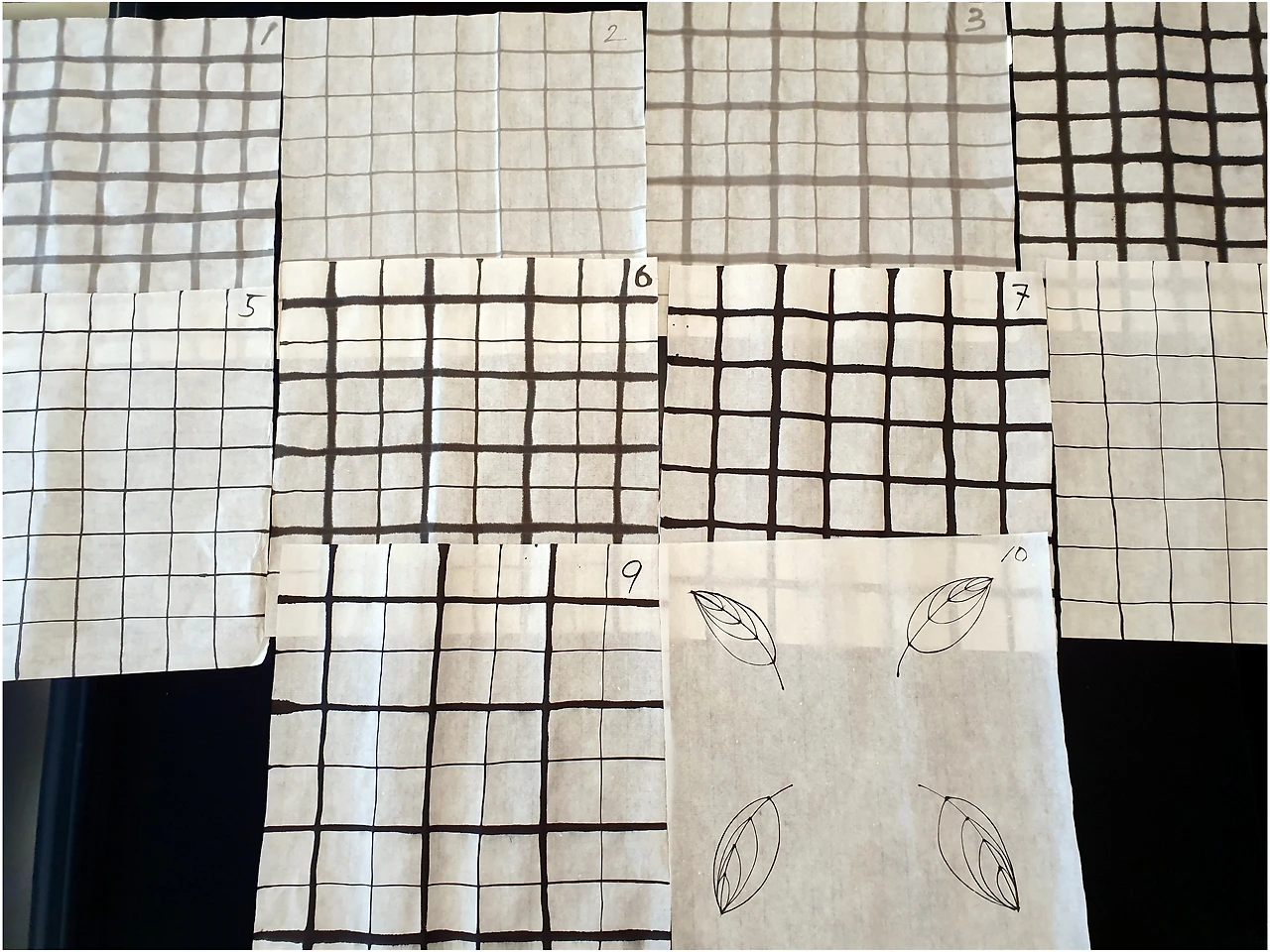 어린 시절 친구를 어른이 되어 만났을 때 분명히 아는 얼굴인데 낯설어서 존댓말이 나오려 하는 것처럼 오랜만에 만난 화선지와 붓, 먹물에 적응하는 시간이 필요했다. 붓에 조금만 먹물을 많이 묻혀도 선이 다 번져 버려 두껍게 되고 그게 두려워서 먹물을 조금만 묻히면 마른 선이 갈라져서 보기 흉하다. 편하게 잘 그려지는 자세로 붓을 짧게 잡으면 손에 먹물이 묻어 종이가 더러워졌다. 붓을 정석대로 쥐고 45도로 눕혀서 시작했다가 중간쯤 가서 90도로 세워 선긋기를 마무리하려니 더 어려웠다. 담묵으로 어느 정도 제대로 된 선을 그을 수 있게 되었다 싶어도 먹물 농도가 진해지면 묻혀야 할 먹물의 양과 붓을 종이에 눌러 그리는 압력을 다시 계산해서 또 여러 번 연습해야 선생님이 주문한 두께의 선을 그릴 수 있었다. 가로세로로 선 긋는 게 이렇게 어려운 거였나!