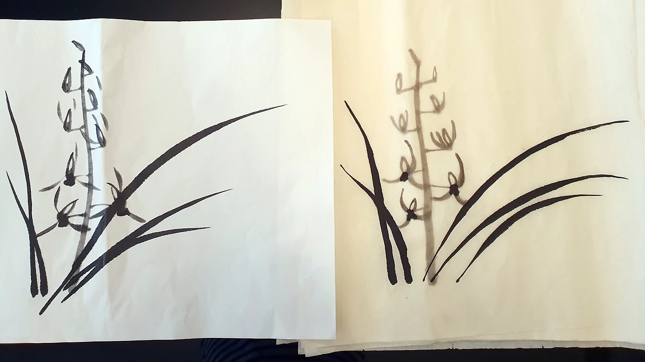 내가 그린 건 줄 알고 비웃을 준비를 잔뜩 하고 있던 남편은 선생님 그림이란 말에 당황한다. 이 단순한 걸 두 시간 동안 그렸다는 걸 못 믿겠다고 어디가 대단한 건지 설명을 해 달라고 하는데 설명하기엔 너무 길고 귀찮아서 내가 그린 걸 보여 줬더니 바로 납득한다, 선생님이 그린 난은 대단한 거였다는 걸.