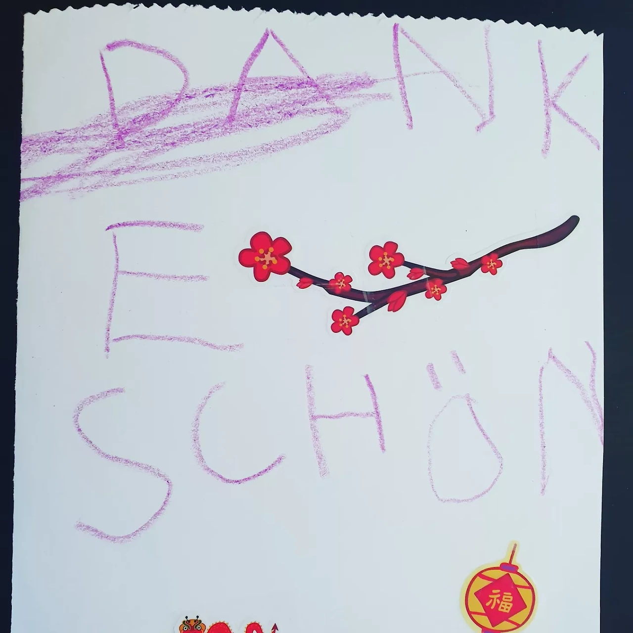 아이가 곧 그만 두는 독어 선생님에게 쓴 감사 카드. 이걸 쓰게 한다고 윽박지르는 나쁜 엄마였다가, 알파벳 하나만 맞춰도 잘 한다고 호들갑 떠는 좋은 엄마였다가 이랬다 저랬다...