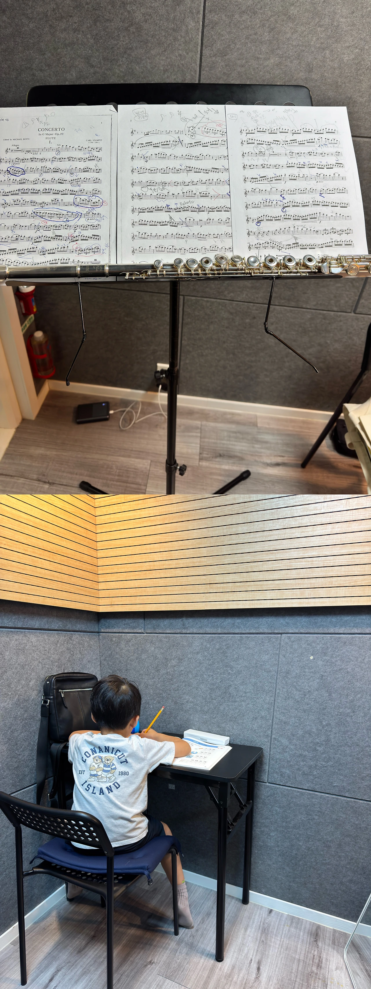 도서관에서 돌아와 저녁을 먹고 아들과 플루트 연습실에 왔다. 방학 때부터 연습하는 곡이 있는데 요즘 통 연습을 못했었다. 조금 늦은 시간이었지만 그래도 오늘은 연습이 필요했다. 연습실은 후평동에 있는 사운드오프라는 곳이다. 아내가 찾아준 곳인데 여름방학 때부터 열심히 다니고 있다.