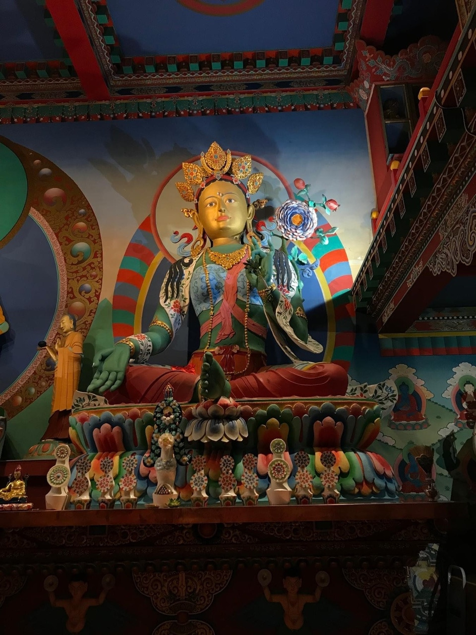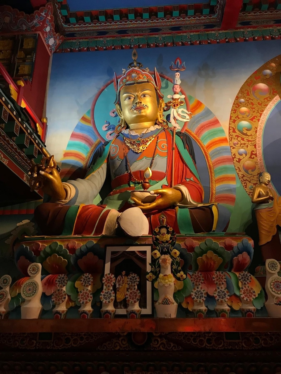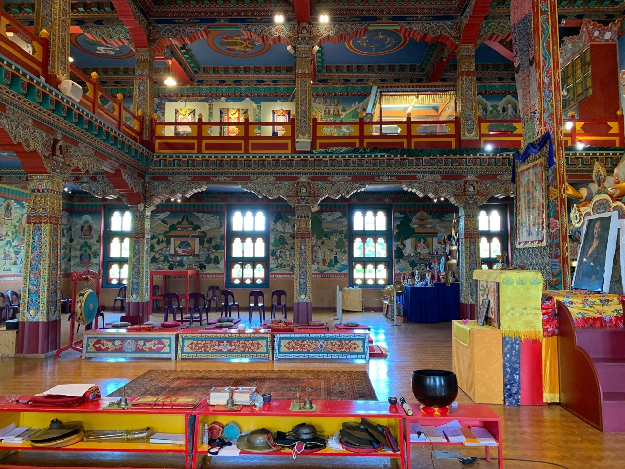 총 3층으로 이루어진 이 사원의 내부는 복층 구조로 이루어져 있으며 중앙에 석가모니 부처님 그리고 좌우로 파드마삼바바와 그린타라 보살이 자리하고 계신다.