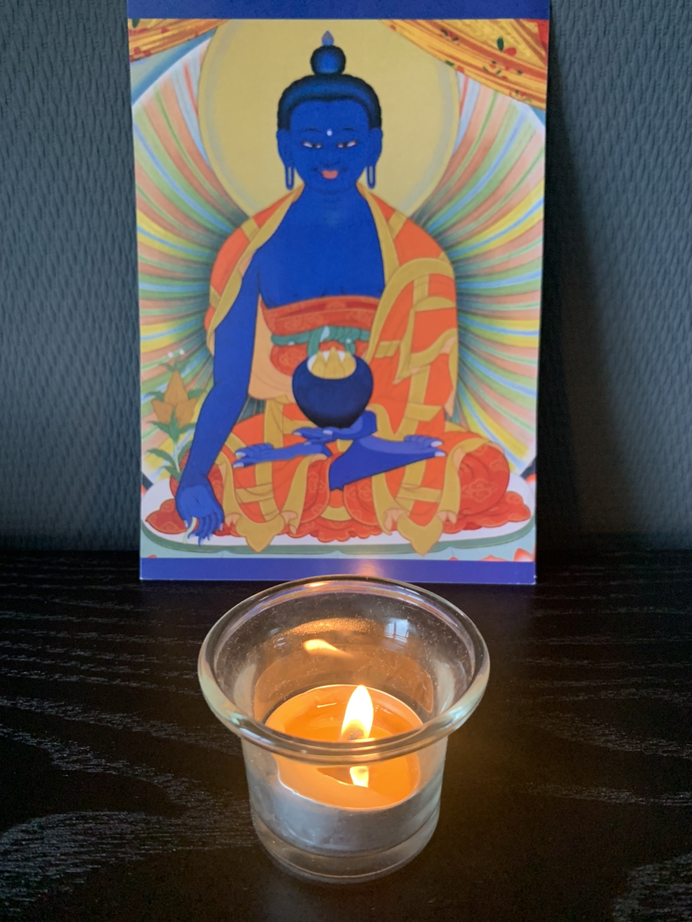'약사여래불'은 중생의 수명 연장이나 질병 치료 등을 도와주어, 중생을 바른 길로 인도하여 깨달음을 얻게 도와주시는 부처님이시며 티베트에서는 쌍걔 맨라'(Sangye Men lha)라고 부른다