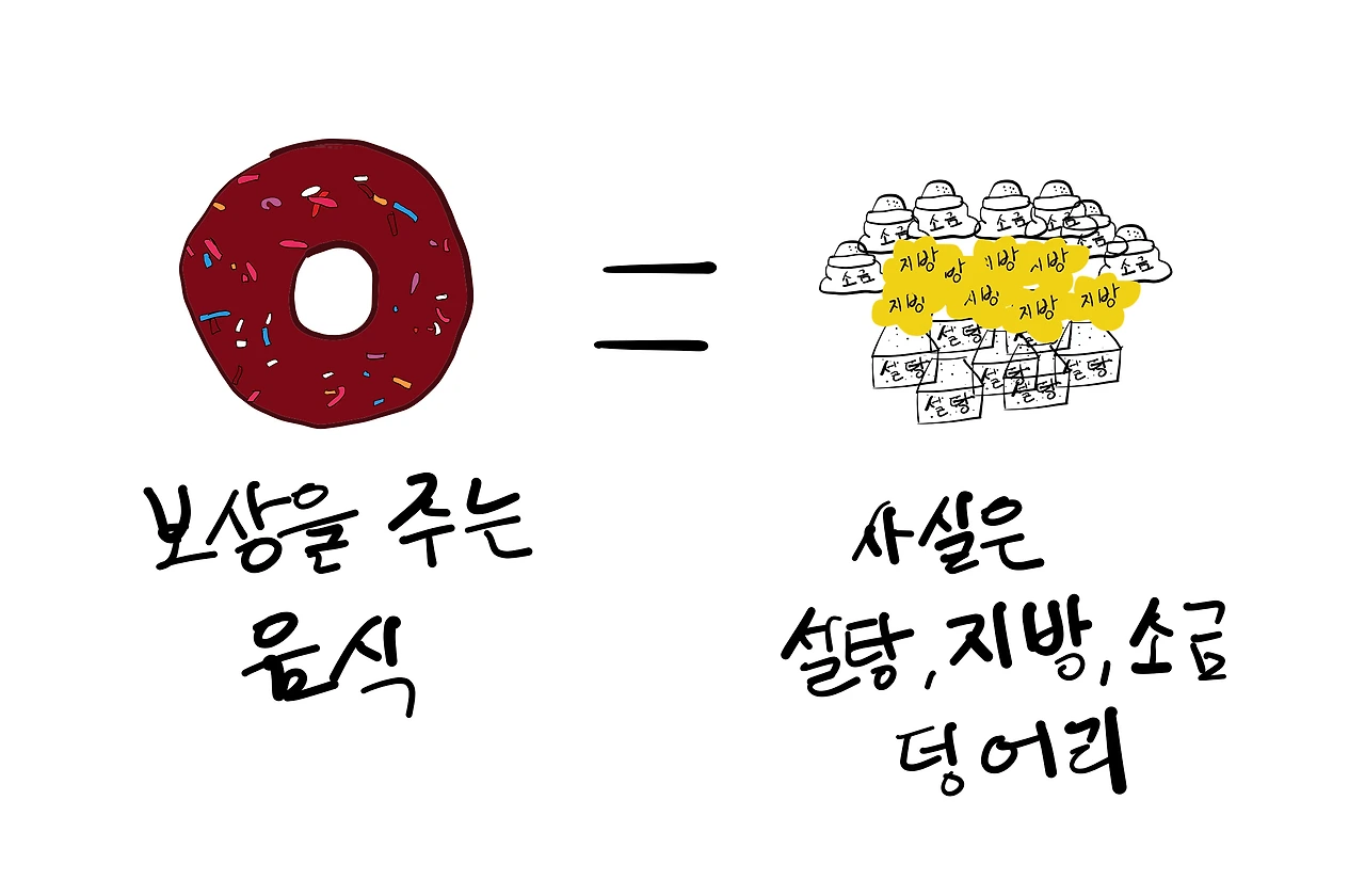 우리는 이제 음식의 가치에 대한 평가를 바꿔야 한다. 마치, 과거에는 담배가 섹시하고 마초적인 이미지의 상품이었지만 지금은 혐오의 대상이 되었듯, 나를 만족시켜줄 것처럼 보이는 저 음식에 대한 평가도 바뀌어야 한다. 설탕 위에 지방 위에 소금이 겹겹이 쌓인 많은 양의 음식을 더 이상 매력적으로 보지 않고 먹고 나면 나에게 불쾌감을 주는 혐오의 대상이 되어야 한다. 자극을 바라보는 방식을 바꾸며 인식 변화를 하고 예전 행동만큼 보상을 줄 새로운 행동을 배우는 것이 필요하다.