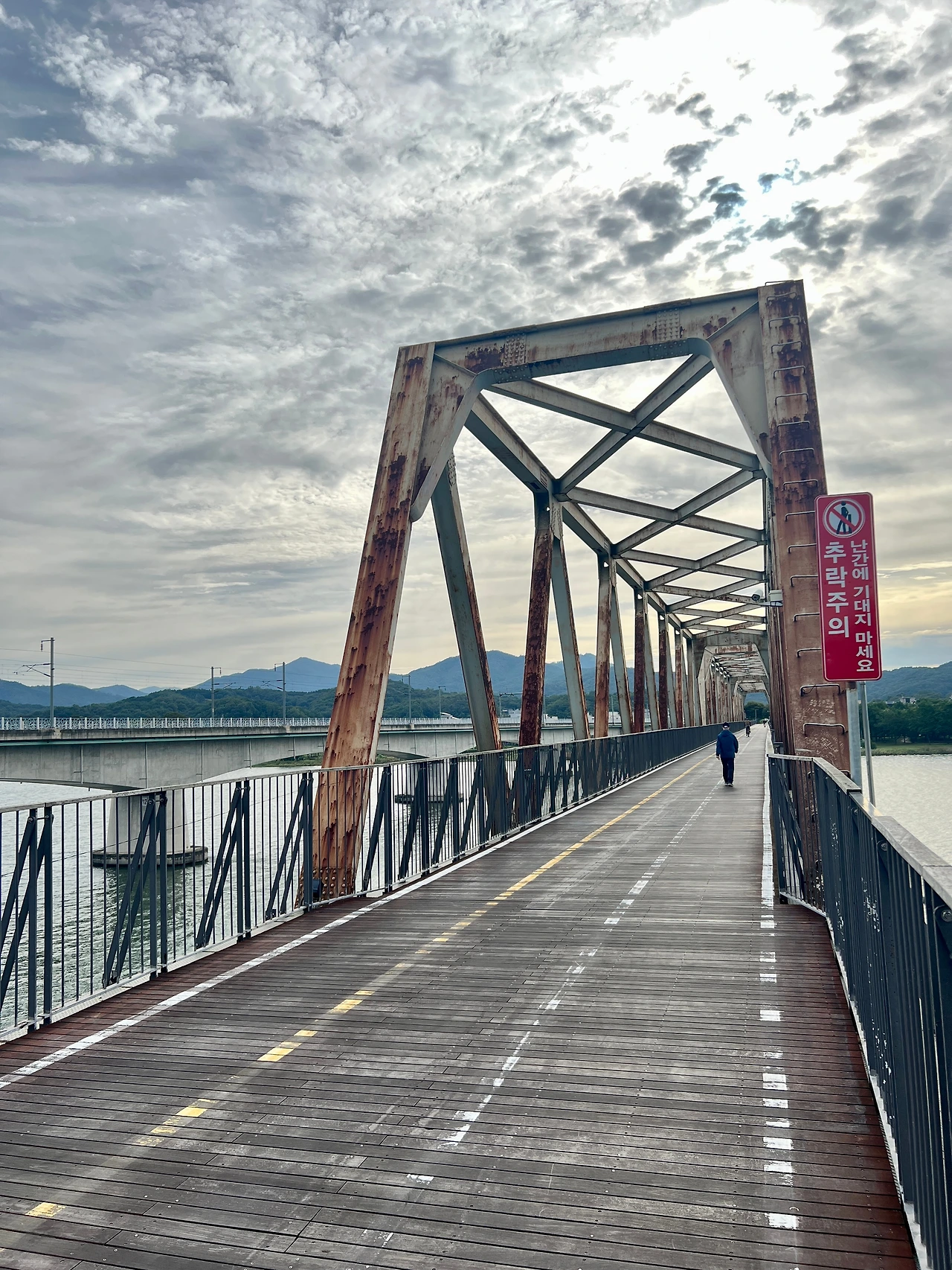 멀리 양수대교가 보인다. 철교를 건너고 나면 두물머리로 방향을 바꿀 수도 있고 내친 김에 남한강자전거길을 죽 따라가볼 수도 있다. 남한강자전거길은 나중에 또 이야기해보겠지만 개인적인 생각으로는 조금은 지루한 느낌이 들었다. 아무튼 이제 막 자전거여행에 익숙해지는 시기라면 여기서 두물머리 쪽으로 방향을 바꿔 보는 것도 좋겠다. 볼거리들이 참 많기 때문이다. (핫도그나 빵을 좋아하신다면 더더욱)