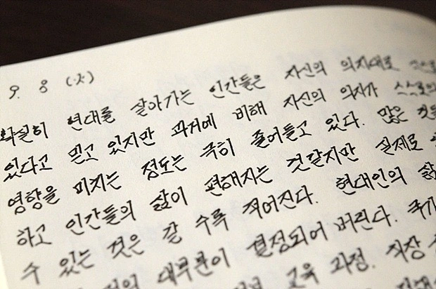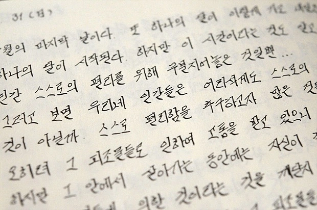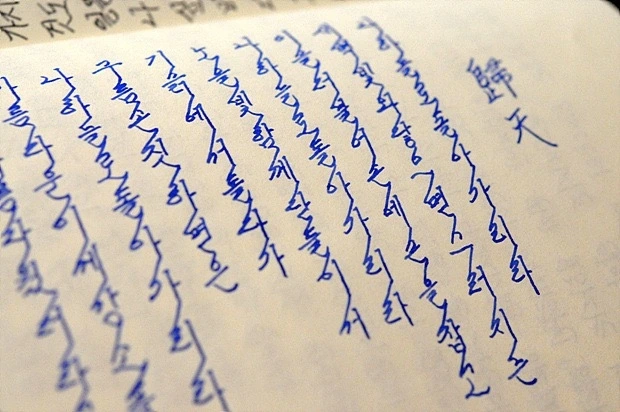 몽블랑 146 EF입니다. 아시겠지만 몽블랑의 EF는 별로 가는 편이 아니기 때문에 가로로 한글을 쓰는 게 쉽지는 않습니다. 잉크는 까렌다쉬 카본입니다.