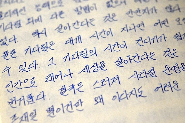 역시 146 EF입니다. 무선노트의 장점은 세로글을 쓰기 무난하다는 점이죠. 일전에 적었던 귀천입니다. 잉크는 Herbin 사파이어블루인데 번짐을 억제하고 있는게 보입니다. 원래 사파이어블루는 상당히 번짐이 강합니다.
