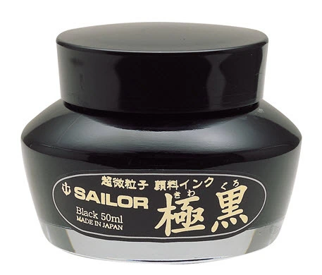 내 경우는 딥펜도 종종 사용하기 때문에 아주 진한 잉크를 좋아한다. 잉크는 제조사마다 각기 다른 특성을 가지고 있는데 까다로운 만년필들은 같은 제조사 잉크에 최적화되어 있는 경우도 종종 있어서 제조사와 잉크가 다른 경우 필기가 제대로 되지 않는 경우도 있다. 세일러의 '극흑' 잉크가 그런 성향이 있다. 세일러 만년필 자체가 대부분 얇은 동양 글씨체에 적합하게 설계가 되어 있어서 이 잉크는 점도도 놓고 색상이 정말 검정 그 자체다. 아주 얇고 진한 한자나 한글을 주로 쓰신다면 가장 좋은 선택이지 싶다.