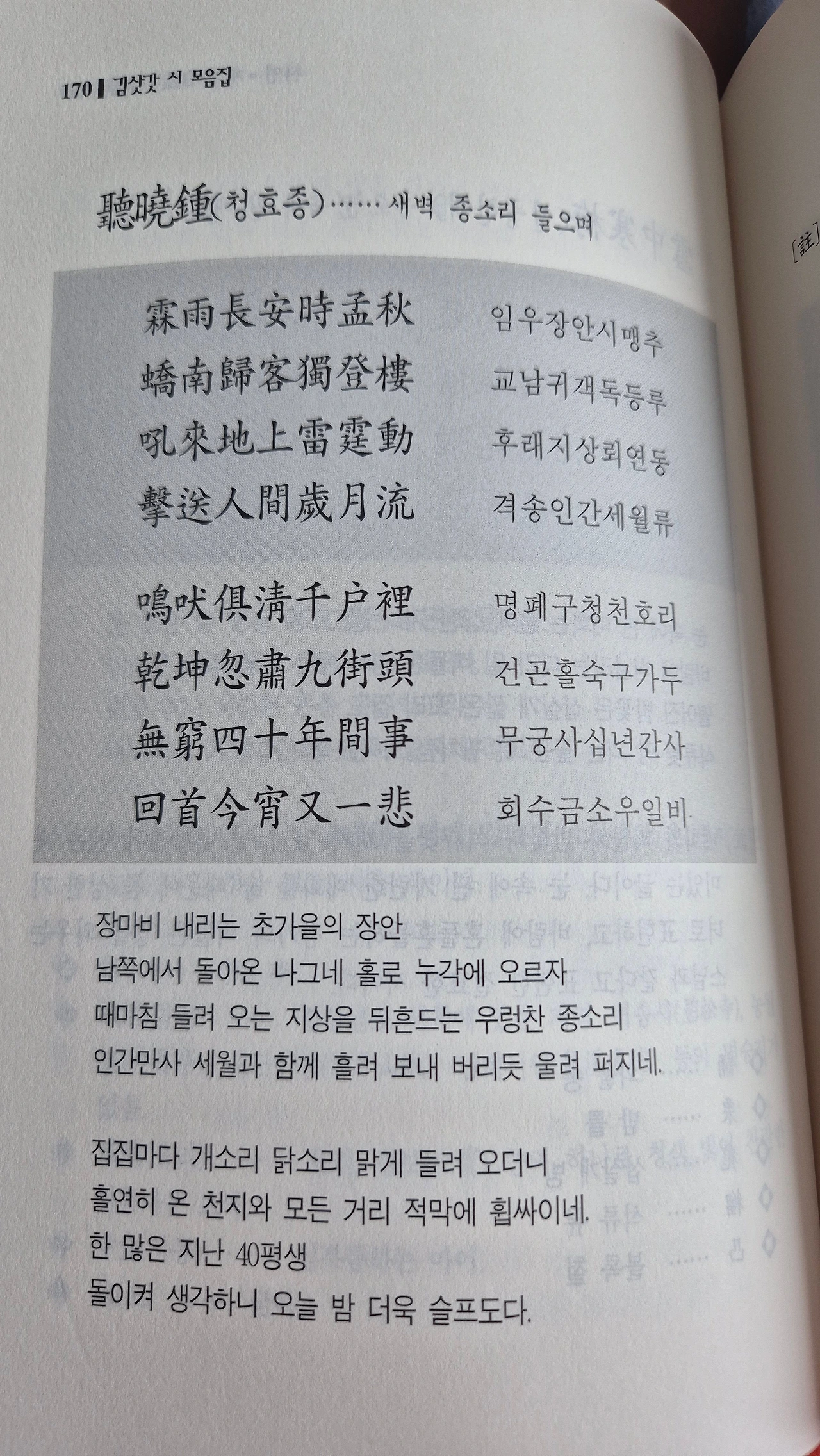 다시 생각해서 해석하였습니다. 약간의 해석 차이가 있을 수 있으나, 이 시를 짓는 심정은 전달되었으리라 생각합니다. 생각지 못한 한자공부 시간을 가졌으나, 이 시를 여러 번 생각하게 되어 즐거웠습니다.