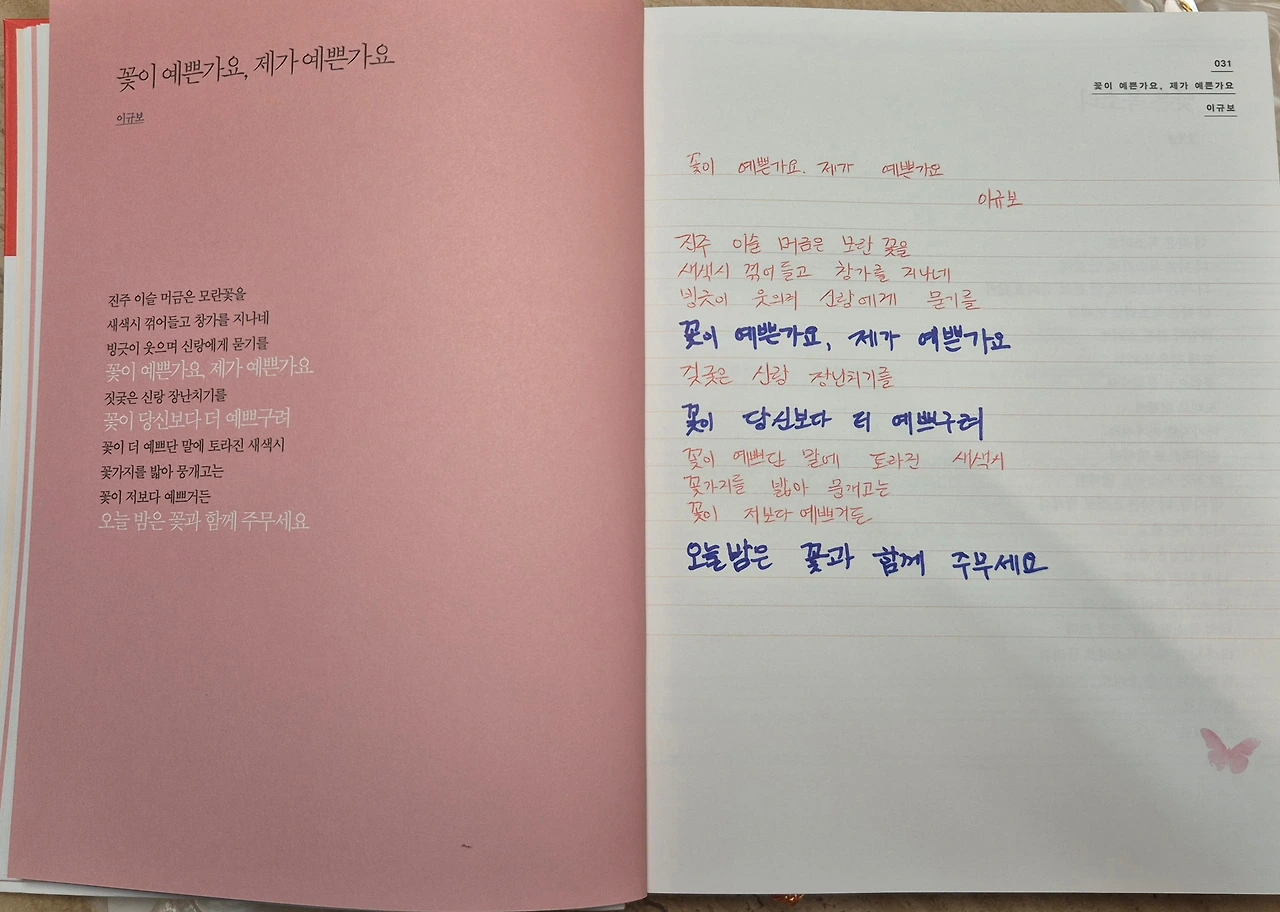 좋아하는 시인의 시집을 통째로 필사하는 것이 가장 좋으나, 이렇게 유명한 시인께서 골라놓은 필사용 시집을 사는 것도 좋습니다.