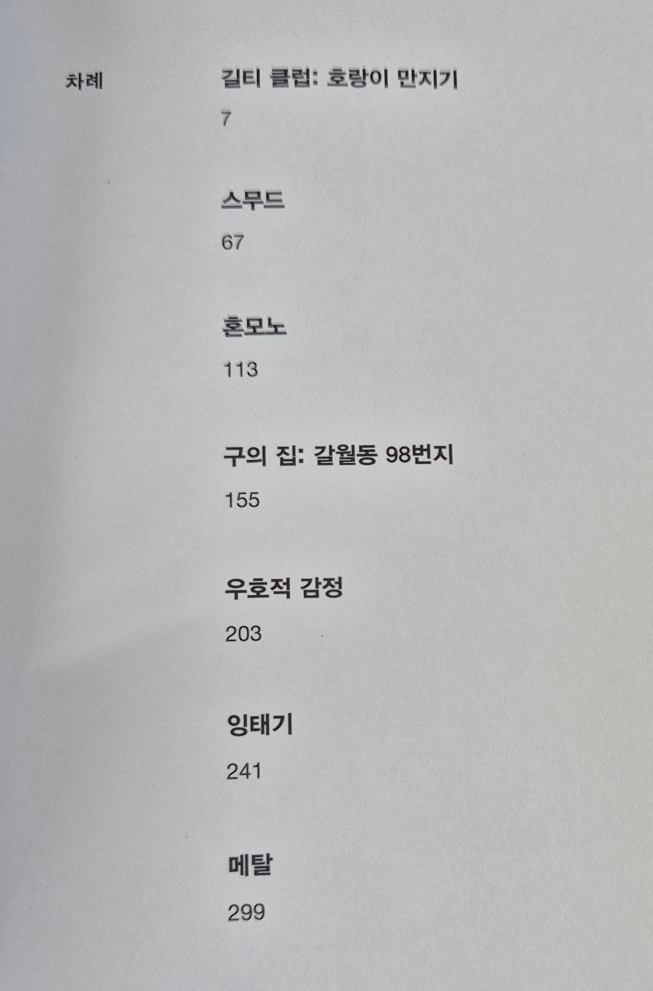 총 7편의 단편이고, 무지개처럼 색이 다 다른 매력이 있다. 다 읽고 짝꿍이랑 서로 어떤 단편이 좋았는지 말하기로 했는데, 짝꿍과 나는 모두 [구의 집: 갈월동 98번지]를 꼽았다. 아무래도 이과생의 취향이 저격된 것이 아닌가 싶다.