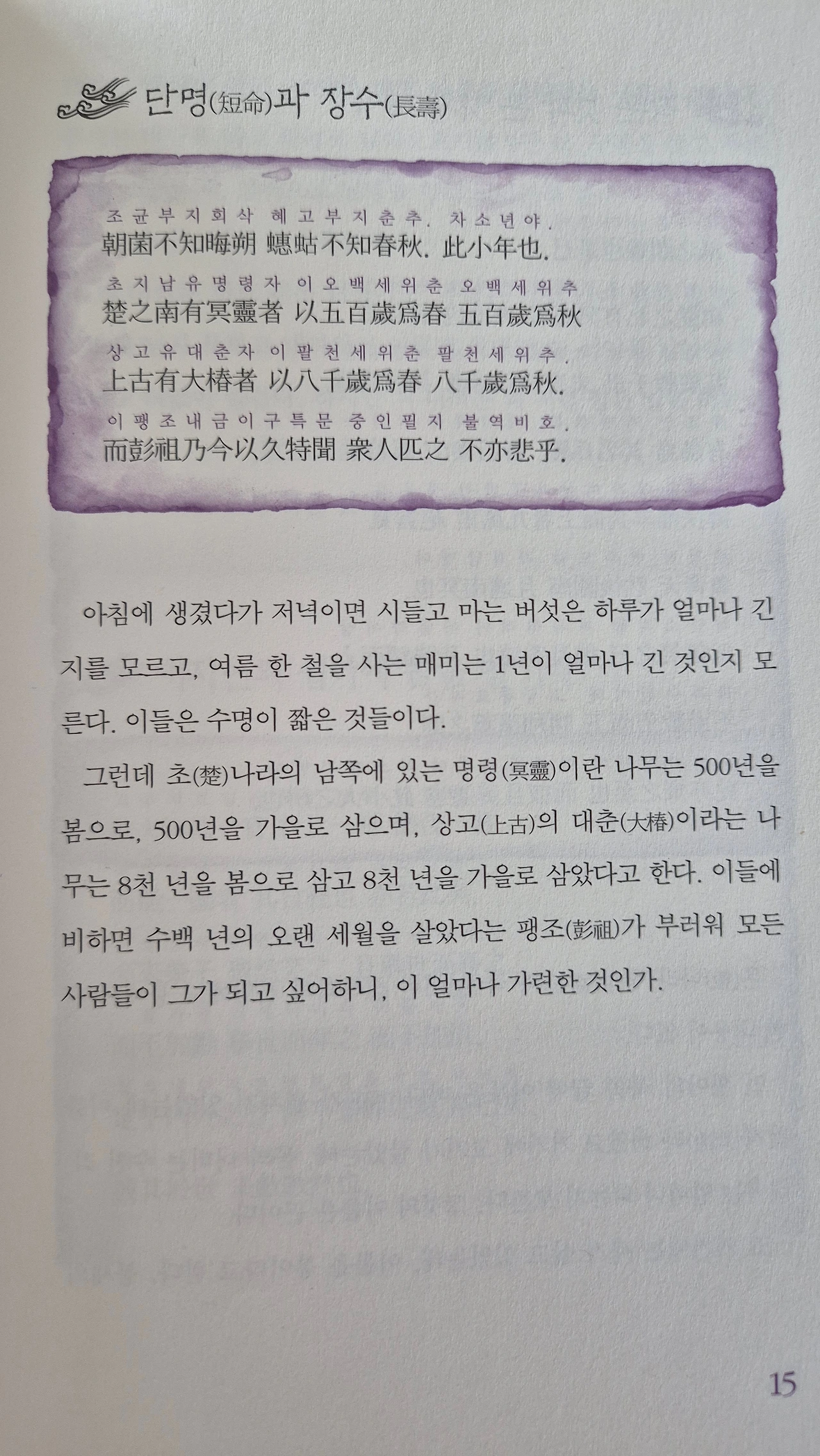 장자의 우화를 읽다 보면 고개를 갸웃할 일도, 끄덕일 일도 많다. 그렇게 한 번, 두 번, 세 번 읽다 보면 나도 세상 이치의 끝자락 정도는 잡을 수 있지 않을까?