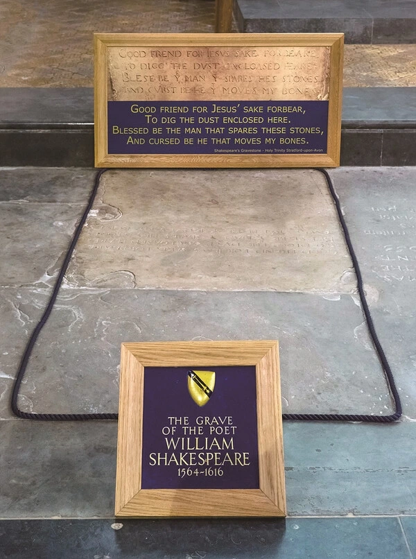 '영국 최고의 극작가' 윌리엄 셰익스피어(1564-1616)는 사망하여 영국 잉글랜드 중부 성 트리니티 교회에 안장되었다. 그의 흉상 아래에는 이런 글귀가 새겨져 있다.