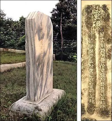 “신령스러운 비다. 쓰러뜨리는 사람은 화를 입을 것이다. 이를 한문을 모르는 사람에게 알리노라.”