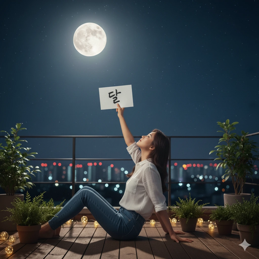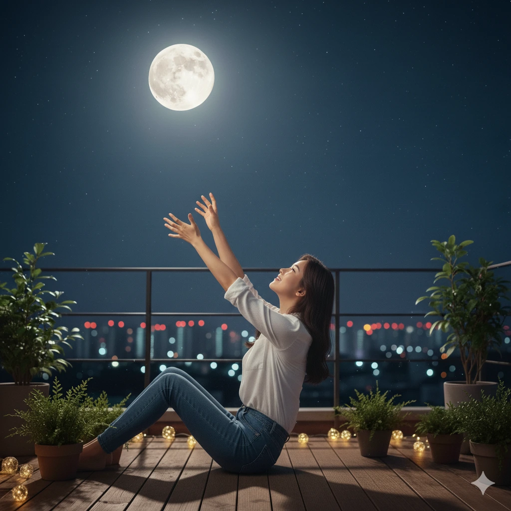 눈앞의 달을 두 손을 뻗어 잡아본다.