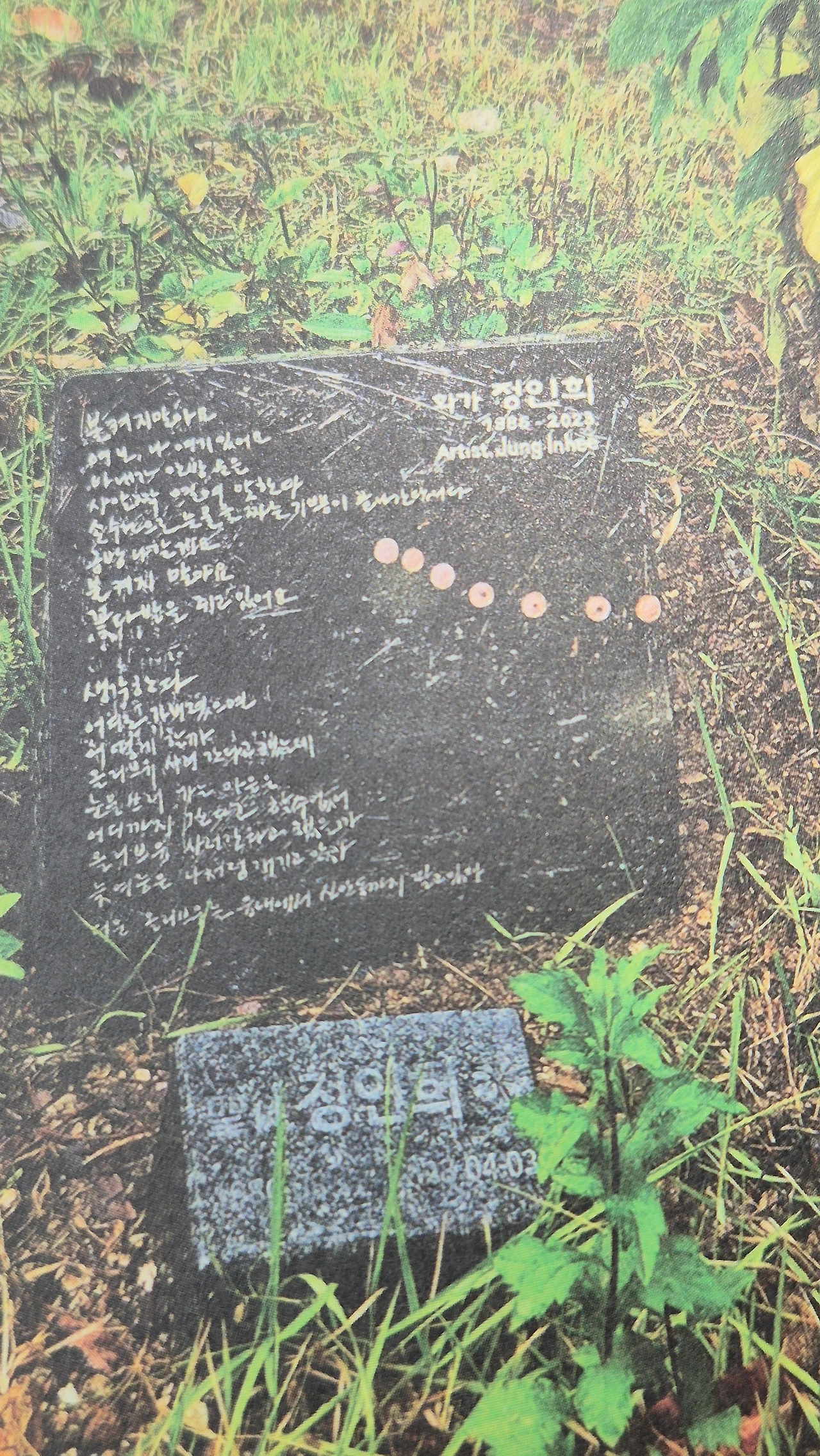 [사랑하는 아내에게]는 2025년 발행된 책으로 아내와 그의 사진, 아내의 글, 그의 글로 이루어진 그의 그리움을 담은 책이다. 묘비명을 찾으려고 이 책을 읽은 것은 아니었으나, 그의 아내 정인희 화가가 묻힌 곳의 사진이 실려있었다.