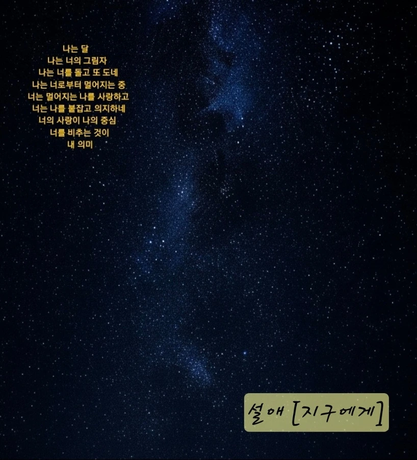 달을 지구처럼 사랑해서, 길어진 가을 밤동안 걱정도 해 질 녘 그림자처럼 길어져서 지구의 마음으로 시를 써 보았습니다.