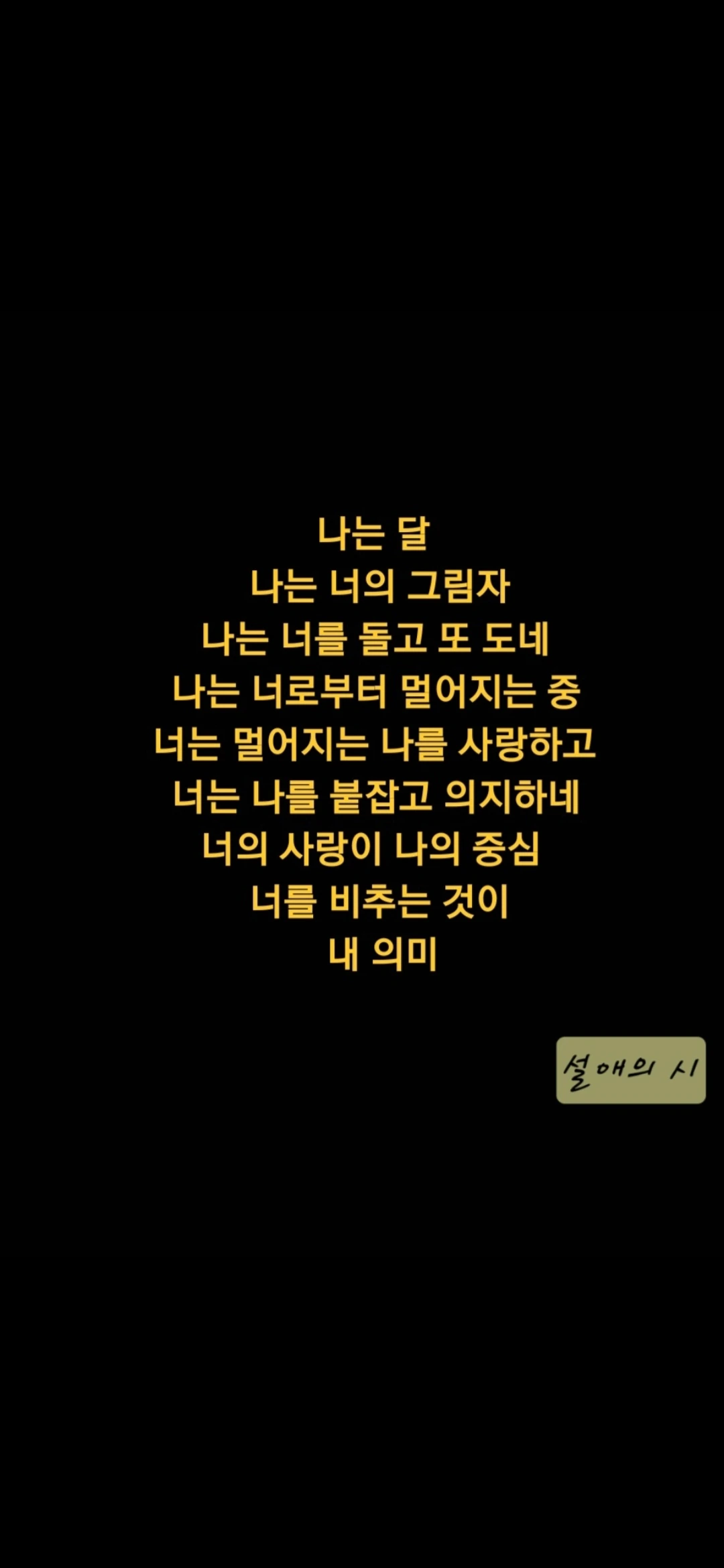 이 작품은 매년 달이 3.8 cm 멀어지는 과학적 사실을 지구를 화자로 하여 감성적인 언어로 풀어낸 시입니다. 지구가 멀어지는 달에게 전하는 절절한 사랑의 고백이자, 달을 잡고 싶은 애절한 마음입니다. 그리고 달이 떠남으로 인한 공포가 숨어 있습니다.