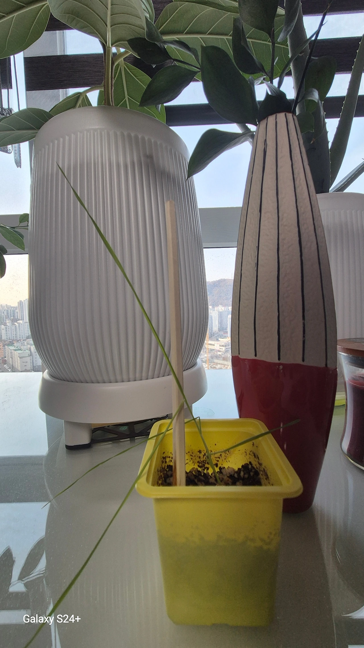 쌀을 씻고 나온 뿌연 쌀뜨물을 올리브 나무에 주는 일은 식집사인 남편이 제게 맡긴 일입니다. 다른 화분은 작아서 욕실로 들고 가서 물을 듬뿍 주는데, 올리브는 너무 커서 옮길 수가 없어서 자주 물을 주어야하기 때문입니다. 어느 날 올리브 나무 옆으로 삐죽 나와 제 존재를 알리는 길쭉한 푸른 싹이 생겼습니다. 남편이 그 싹을 보더니, 쌀뜨물과 같이 떨이진 곡식에서 싹이 난 것으로 아마 쌀이나 보리가 아니겠냐고 했습니다. 그리고는 쑥 뽑아 쓰레기통에 버리려고 하는 겁니다. 깜짝 놀라 뭐 하는 거냐며 다급히 물었습니다. "잡초니까 뽑아야지."라는 남편의 말에, 쌀이나 보리라며 왜 잡초냐고 다시 물었습니다. 올리브 나무 화분에서 올리브가 아니니 잡초로 분류하여 버리려는 것을 작은 화분에 옮겨 심게 했습니다.